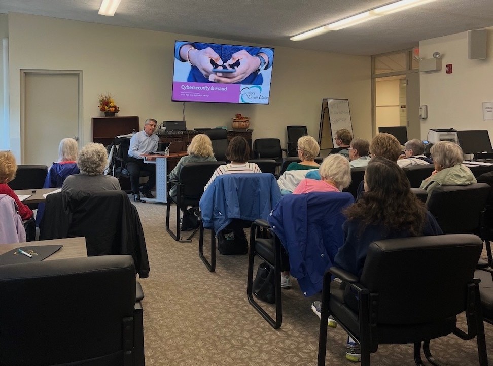 With the help of Dan Marini, QCU’s Director of Information Security, we support digital safety in our community by hosting in-person seminars at local senior centers. These sessions focus on protecting personal information, identifying scams, and staying safe online.